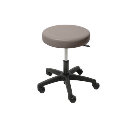 UMF Medical 6760 Ultra Comfort Stool with backrest, foot ring, and 16” (40.6cm) vacuum formed, seamless seat. 5 leg black plastic base with 2” (5.1cm) twin wheel carpet casters. Height adjustment via threaded stem. Available in all 12 UMF Medical upholstery colors.