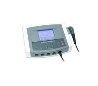 The microprocessor-controlled Sonicator Plus 940 is a touch-screen four-channel combination unit. It combines 1 and 3 MHz ultrasound with eight treatment waveforms: Interferential, Premodulated, Medium Frequency (Russian), EMS, High Volt, TENS, Microcurrent and Direct Current (DC). All waveforms are available on all four channels. A dual-frequency 5.5cm², 1/3 MHz applicator comes standard with the unit. The membrane panel and back-lit LCD touch panel allow the clinician to quickly setup treatment parameters. There are 61 preset programs and space for 80 user-defined programs. An optional 2cm² dual-frequency applicator is also available.