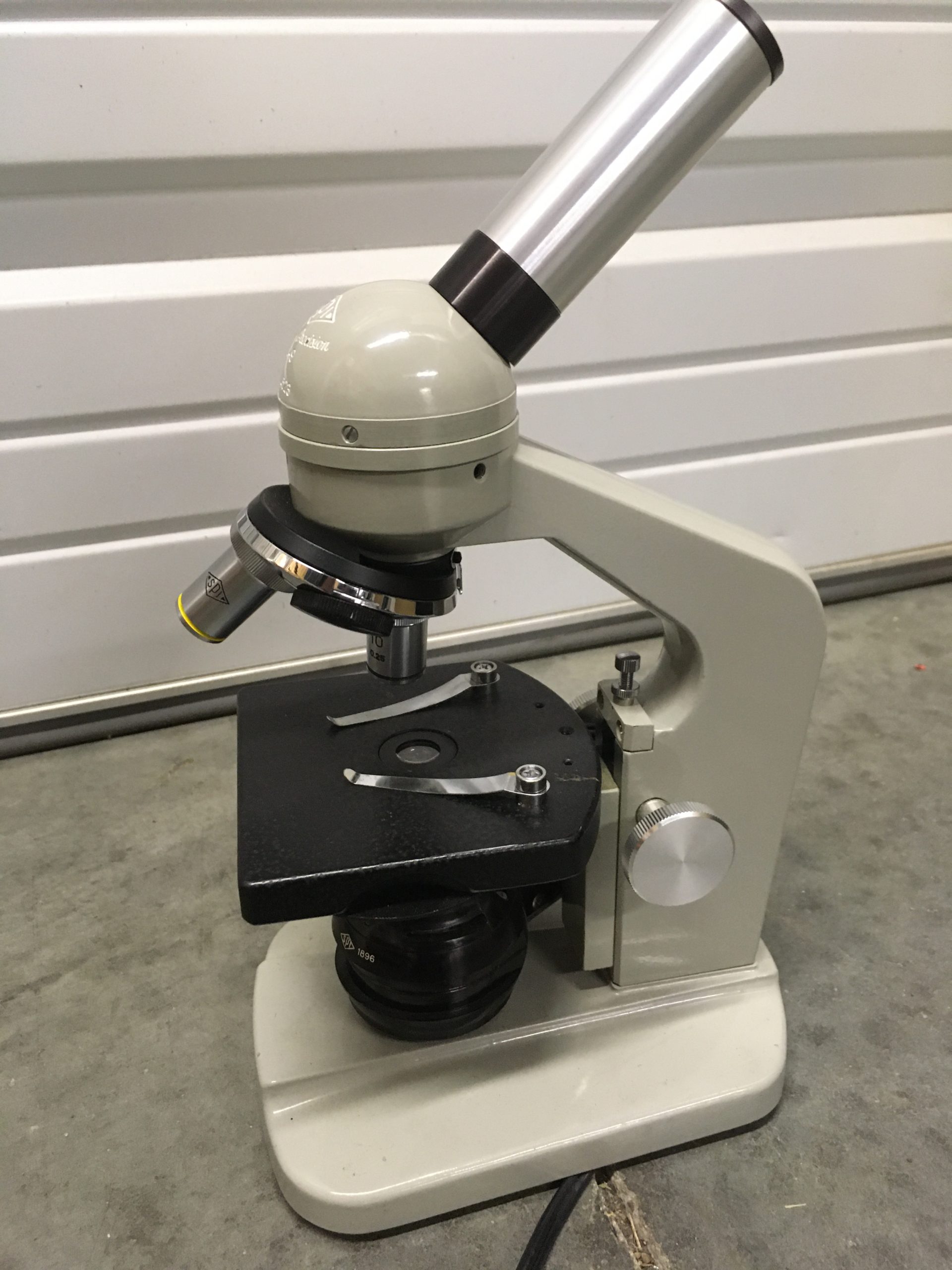 Vintage refurbished monocular microscope. In great condition considering its age – a good budget, risk-free option for a lab or clinic backup.