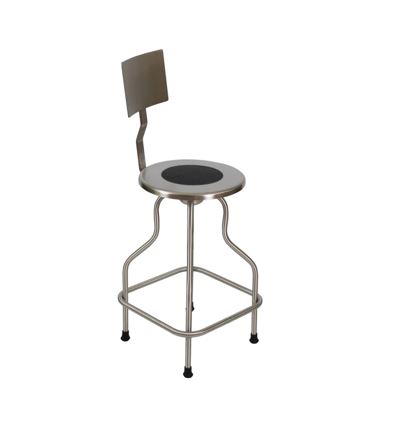 UMF Medical 6700 stainless steel stool with tubular foot rest, revolving seat and backrest. Non-slip material flush mounted into recess of stool seat. Seat height adjustment via threaded stem. Welded foot rest. Non-slip rubber tips on stool legs. 3 year limited warranty